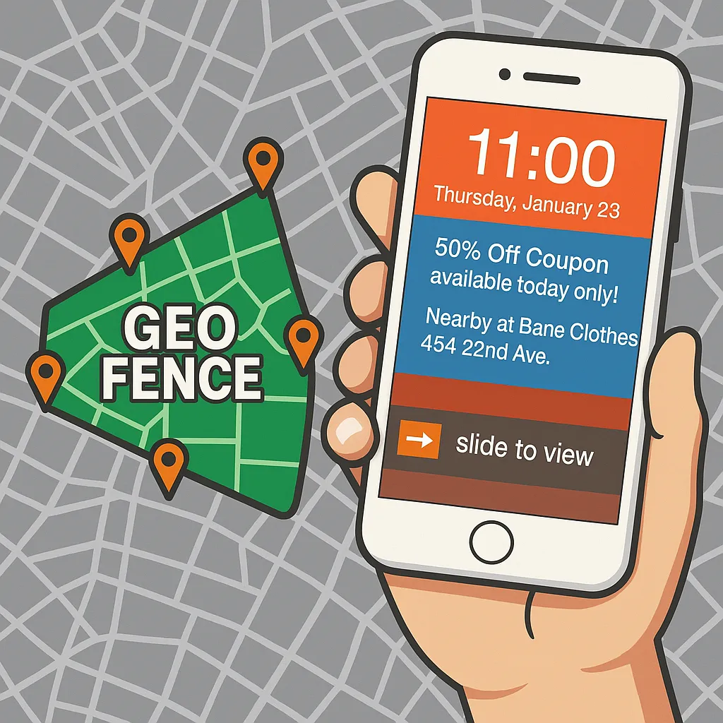 Use Geofencing to target nearby locations including traffic, building, and even your own location to perform customer loyalty marketing.